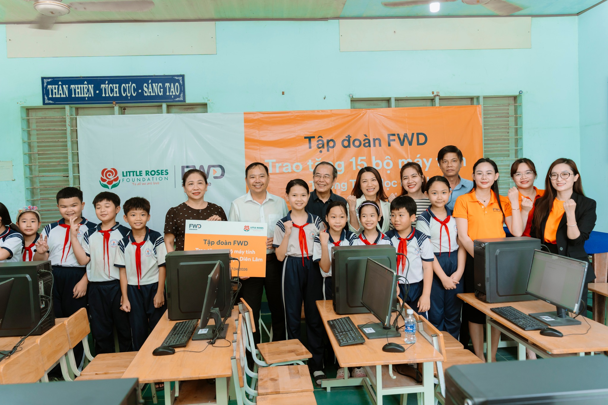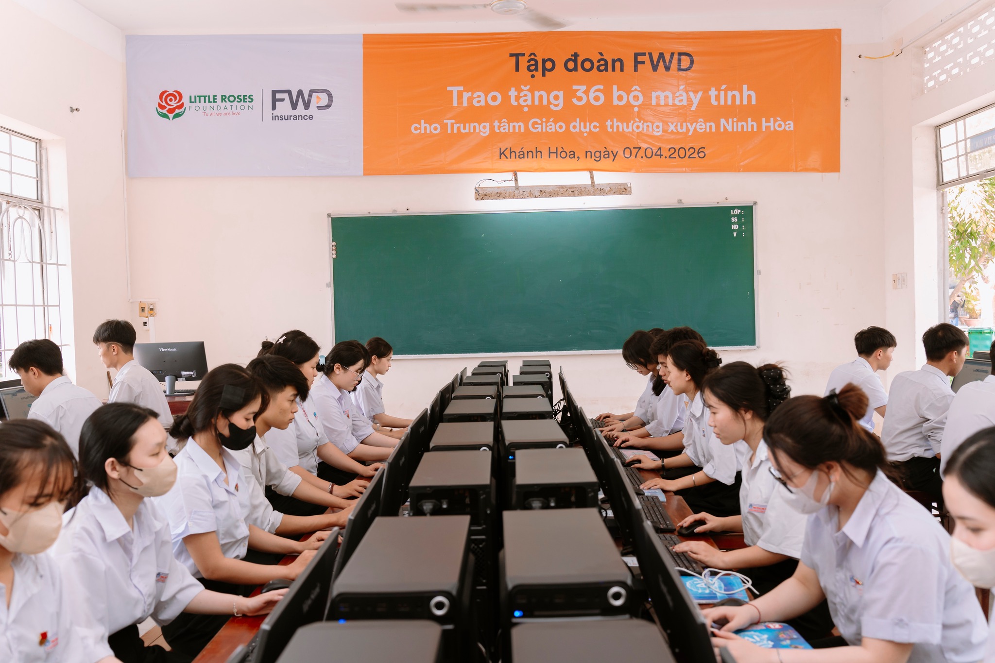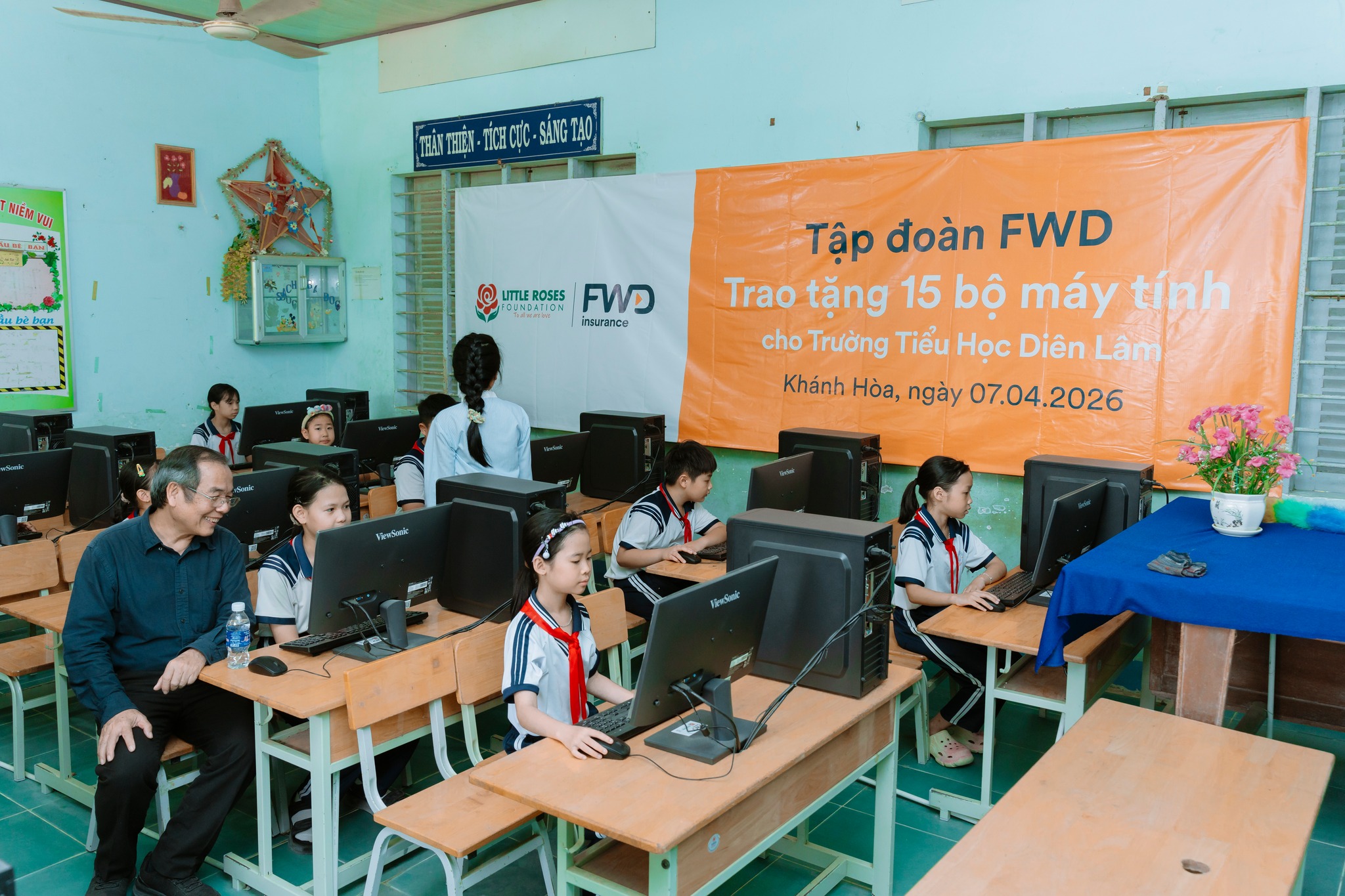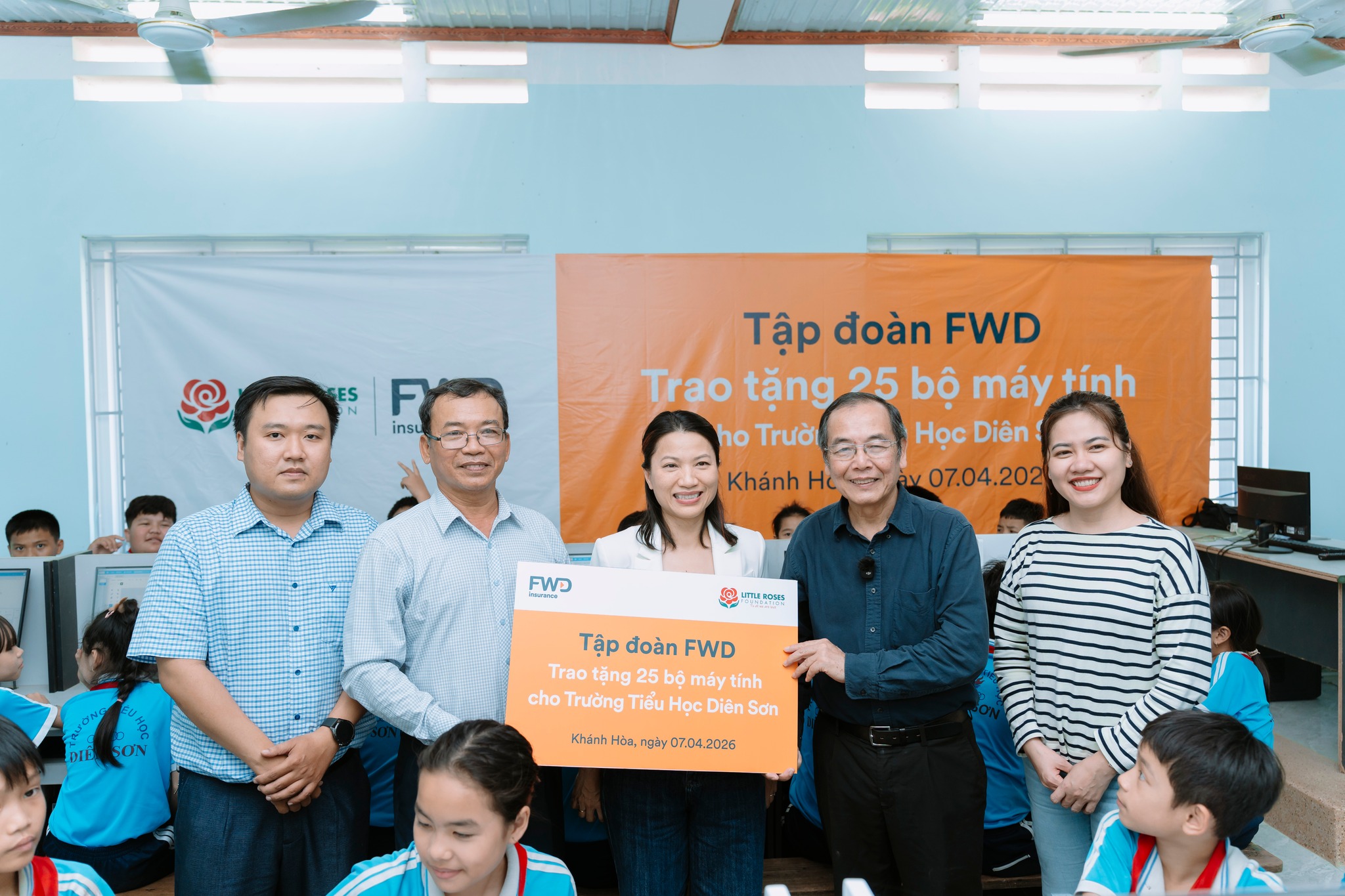 Ngày 07/04/2026, Quỹ Bông Hồng Nhỏ (LRF) phối hợp cùng FWD đã trao tặng 76 bộ máy tính cho 3 cơ sở giáo dục từng chịu ảnh hưởng bởi bão lũ cuối năm 2025 tỉnh Khánh Hòa. Với tổng giá trị tài trợ khoảng 1 tỷ đồng, dự án góp phần bổ sung thiết bị học tập, mang đến cơ hội tiếp cận công nghệ cho gần 1.500 học sinh trên địa bàn.